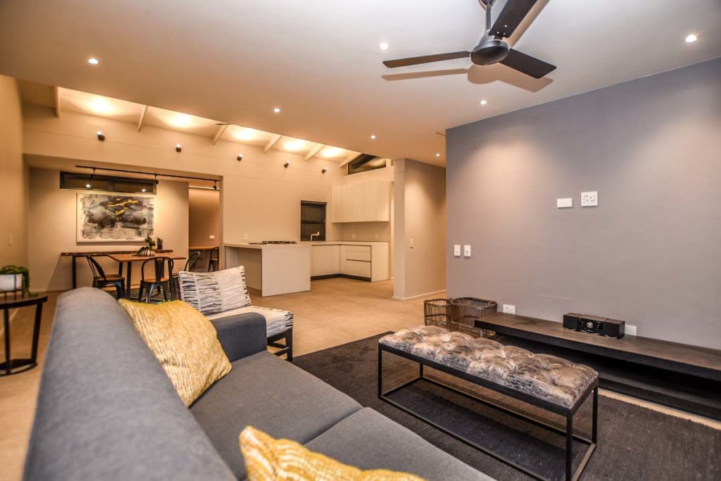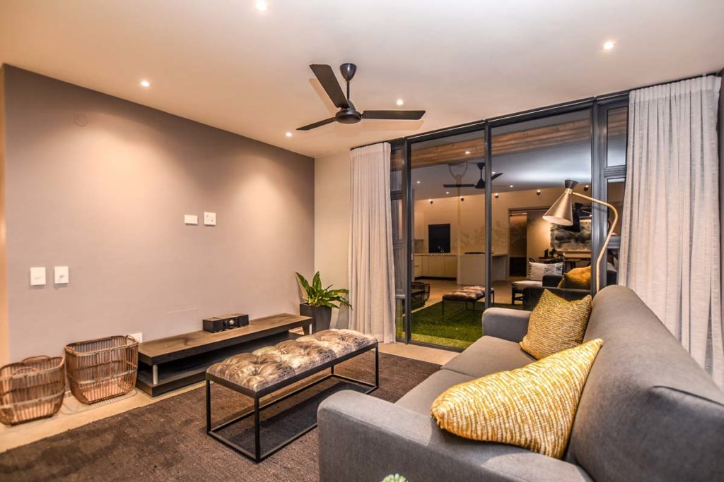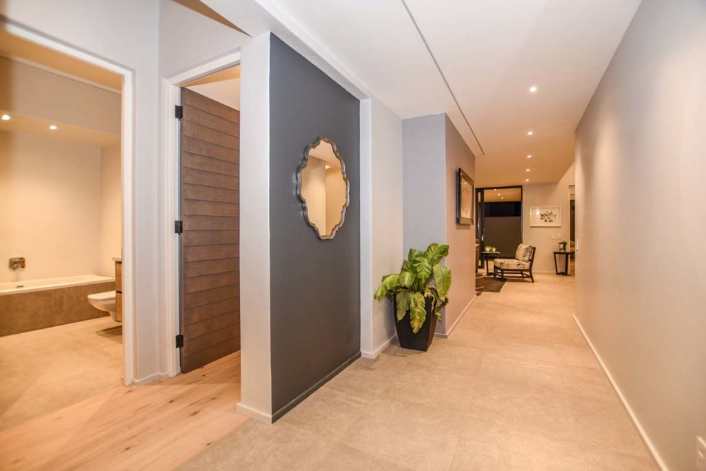 As you walk into this modern house, you are welcomed by the natural light that flows directly into this lovely space you soon can call home. From the main entrance you pass through the foyer, which leads you to the immaculate open plan kitchen, living and dinning area. The kitchen is imported from Germany and compliments the stylish design of this property. The living area has access to the covered patio that comes with a stainless steal built in braai.