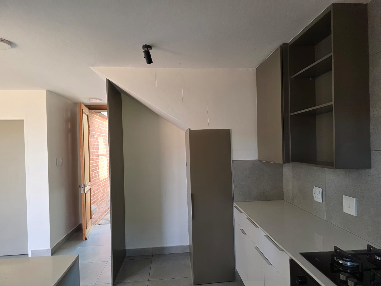 The spacious kitchen forms part of the open-plan living space and features ample counter space, a wash-up/scullery area with room for three appliances and a double fridge, and a cleverly positioned pantry beneath the staircase to maximize storage without compromising flow.