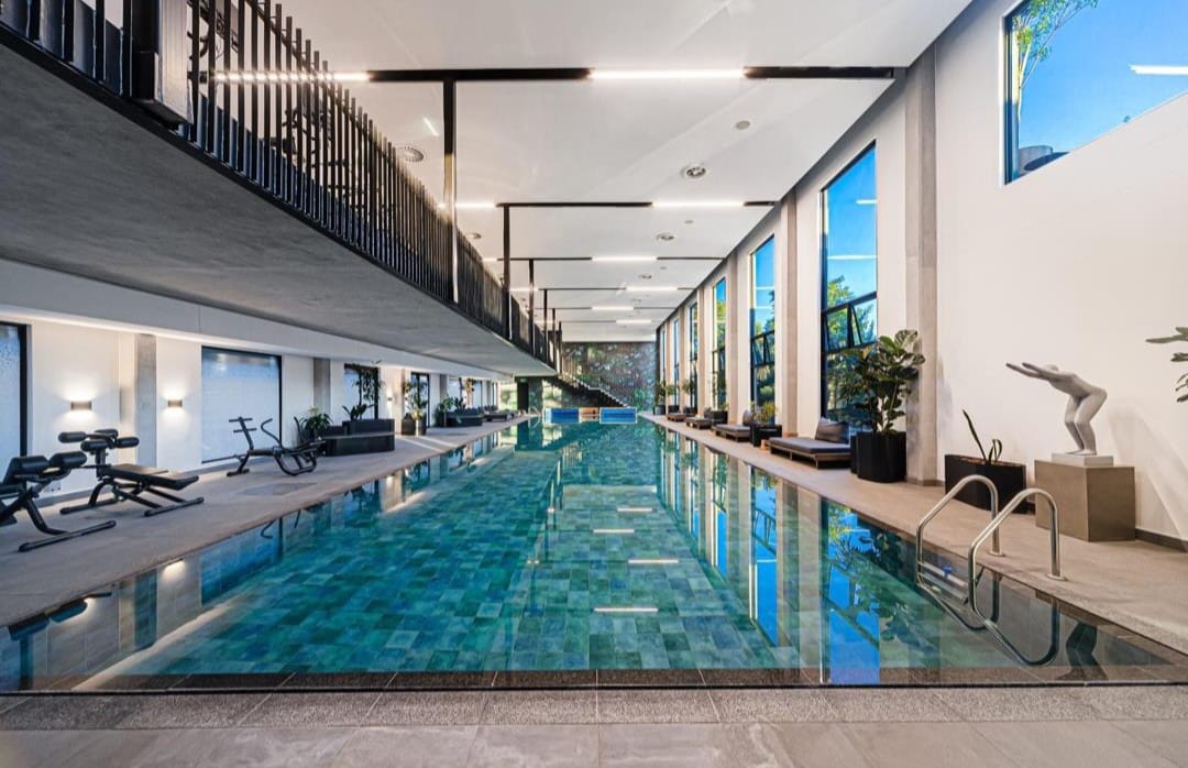 The apartment offers two well-proportioned bedrooms and two bathrooms, including a main en-suite. Its corner position allows for abundant natural light and maximises the views from multiple vantage points throughout the home.